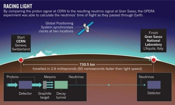 neutrinos llegaban 60 nanosegundos antes de lo previsto, lo que